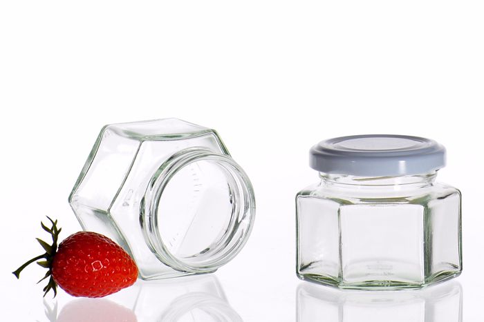 Schraubglas 6-Eckig53 er Twist-Off Deckel in Weiß, Silber oder Schwarz.